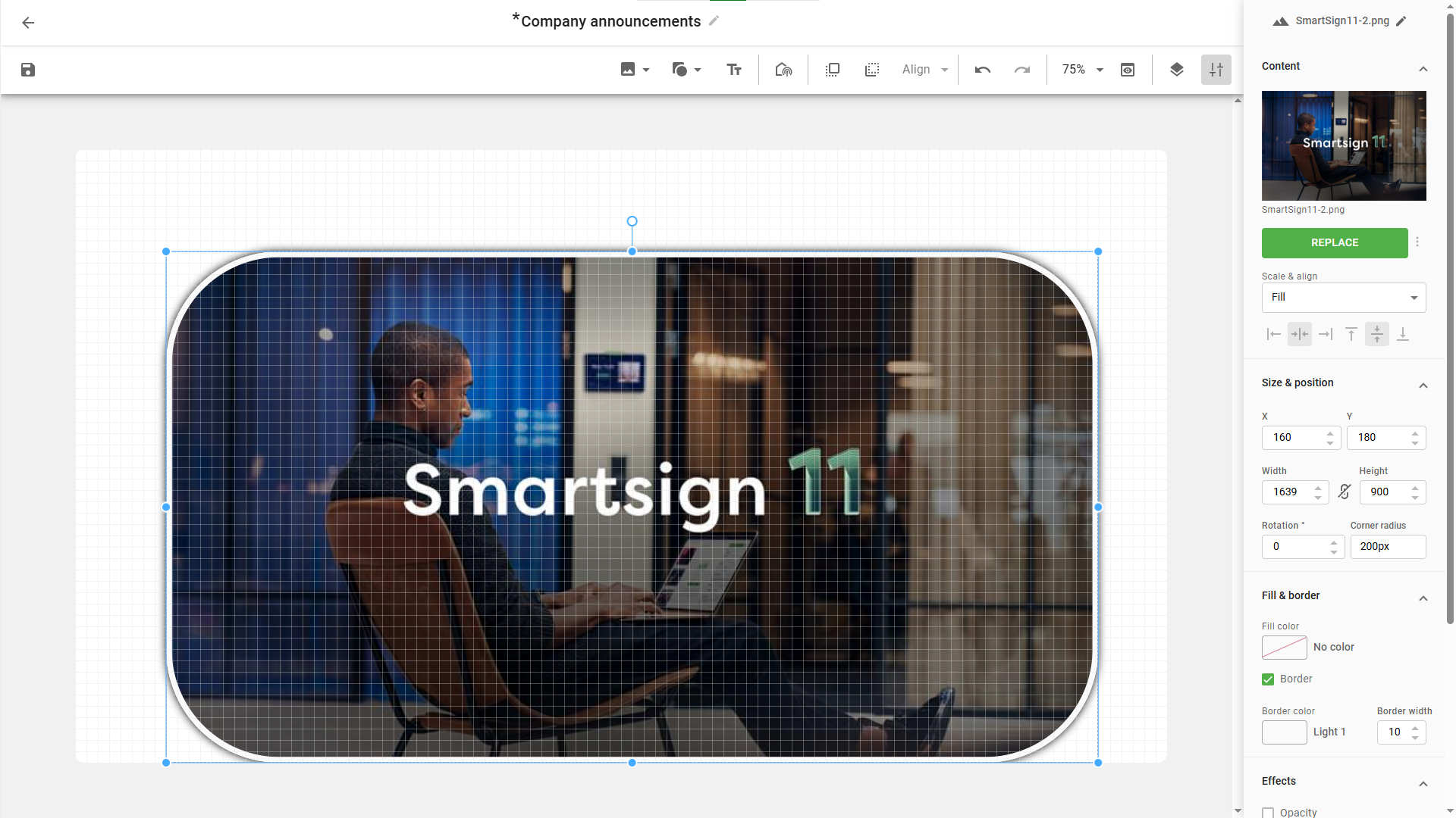 When you use a template to create Smart Media, it is loaded live on the screen, enabling visual effects and live data-updates.