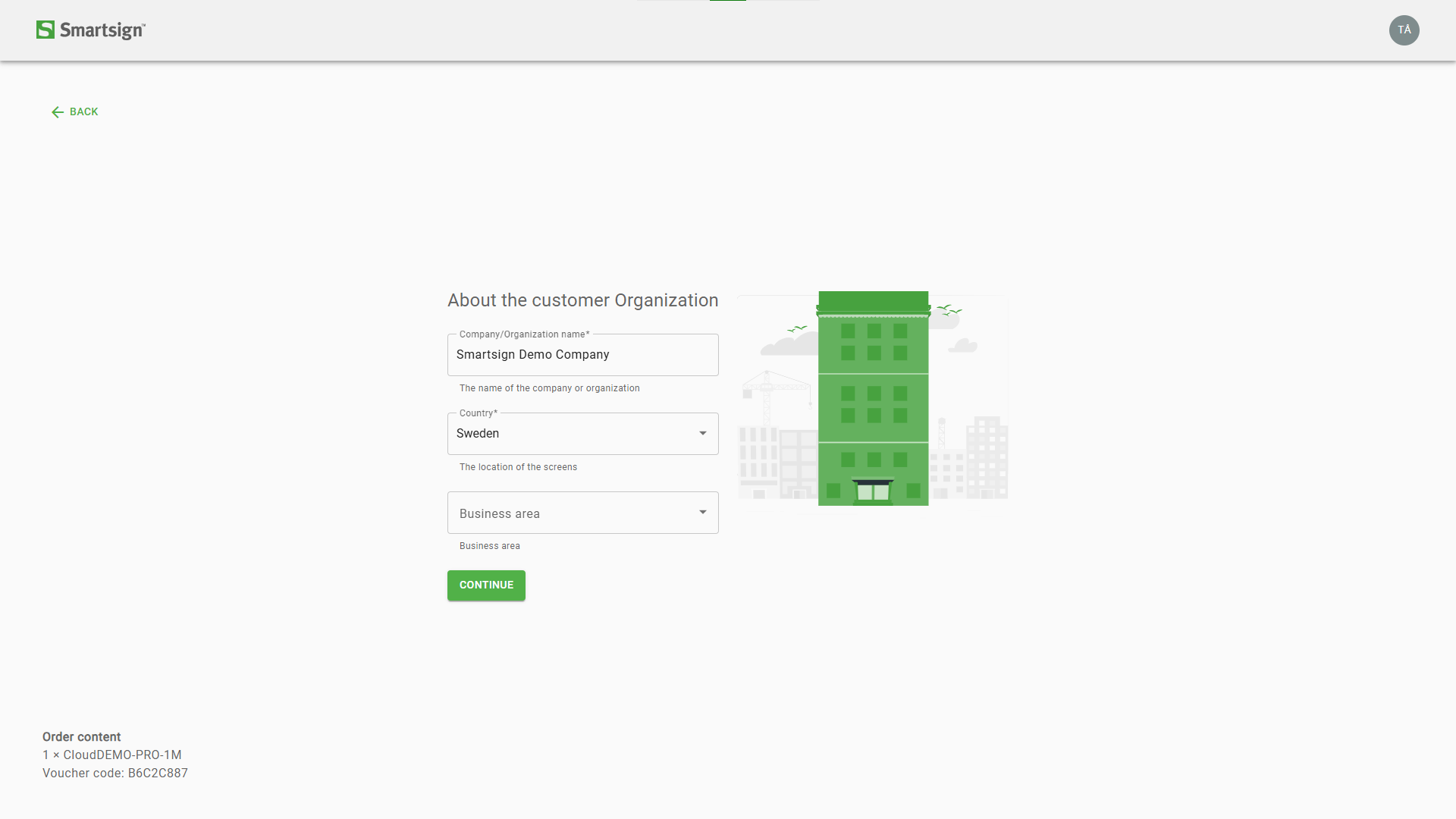 As this is the first time your company or organization is using Smartsign, you should select create a new customer to set up your site.